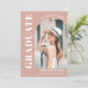 Cette carte de Faire-part Graduation moderne présente une typographie élégante sur un arrière - plan rose vif. Remplacez la photo par la vôtre et ajoutez vos détails.