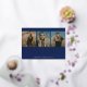 Ce faire-part moderne de trois diplômes de photographie présente une élégante typographie "diplômée" en feuille d'or surélevée avec trois photos sur un arrière - plan bleu foncé. À l'arrière il y a le texte d'invitation pour la fête de remise de diplômes / open house qui peut également être supprimé si pas nécessaire. Les couleurs Arrière - plan et texte sont personnalisables. Ce design simple mais élégant permet vraiment à vos photos de briller en gardant les détails minimes.