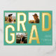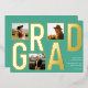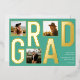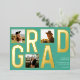 Célébrez votre graduation avec cette invitation moderne de feuille de graduation de typographie photo. Ce design élégant présente une typographie de feuille luxueuse avec le mot "GRAD" en évidence. L'invitation vous permet de présenter trois de vos photos préférées sur le devant, en créant un souvenir unique et personnalisé. Customisez avec votre nom, votre école et votre année de graduation sur le dos pour partager votre réussite avec vos amis et votre famille. Parfait pour les diplômés du secondaire ou de l'université, cette invitation saisit magnifiquement votre moment clé avec un cadre turquoise élégant.