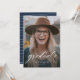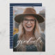 Un script classique simple "gradué" en blanc accentue une seule photo verticale de votre grade. Ce faire-part d'obtention de diplômes fonctionne pour les diplômés du collège ou du secondaire et est assez simple pour laisser briller votre photo. C'est un design intemporel et dispose également d'un dossier rayé avec une couleur personnalisable (par défaut, navy).