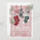 Annoncez l'arrivée de votre nouveau bébé cette saison de Noël avec notre belle et festive carte de Noël de grossesse faire-part. Notre design comprend notre motif en plaid aquarelle peint à la main et accroché des bas de Noël en rouge, vert et noir. Chacune des bas de Noël est customisée avec le nom du parent. Le bas de plaid noir moyen est écrit avec "Baby" pour annoncer l'arrivée de votre nouveau membre de la famille. "So Very Merry" est présenté en calligraphie blanche et élégante. Customisez avec le nom de votre bébé et la date d'arrivée, ainsi que le nom du parent et de l'accueil. Le revers de la page présente notre couronne festive aquarelée avec le bas du bébé suspendu au milieu et customisé avec le monogramme du bébé. Il s'agit d'une carte de vacances unique mémorable à envoyer à votre famille et à vos amis pour annoncer l'arrivée de votre bébé cette saison de vacances.