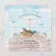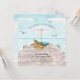 Annoncez votre nouvelle adresse à vos amis et votre famille avec notre belle scène aquarelle océan avec un dock en bois et des chaises longues bleues.