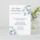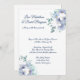 Ce faire-part de mariage est présenté dans le papier blanc mat avec une disposition moderne d'une aquarelle d'art imprimé de belles fleurs bleues et blanches. Texte en bleu marine. Customisez cet élément en prenant l'exemple de texte et en y mettant vos informations à la place. Image stock. freepik.com