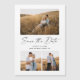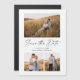 Carte de Faire-Part de Mariage 3 Photos Écriture Moderne. Le dos est un aimant. Cliquez sur le bouton d'édition pour personnaliser ce design avec vos photos et les détails de votre mariage.