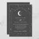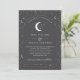 Une lune céleste et une faire-part de mariage à thème étoile avec un arrière - plan gris fusain et un texte blanc avec des éléments. Customisez la couleur de l'étoile motif, arrière - plan, remplissage d'arc et élément lune!