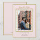 Élégant cadre floral ethnique peint à la main à l'aquarelle sur fond rose pâle carte de faire-part de mariage avec photo de couple.