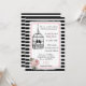 Faire-part de mariage à cage à oiseaux rose corail noir et blanc, les informations avant et arrière peuvent être ajoutées dans la zone de personnalisation.