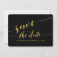 Carte d'enveloppe de faire-part de mariage avec calligraphie dorée en fonte swash sur fond noir.