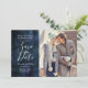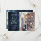 Élégante et moderne carte de save the date pour votre mariage bleu marine ! Le fond est réalisé en aquarelle magnifique. Vous pouvez ajouter vos propres photos de fiançailles. Ajoutez la date de votre mariage, ville et état, site web, etc. Cette carte est recto-verso et au dos, vous pouvez ajouter deux photos supplémentaires (carrées) et votre site web de mariage en bas. Les textes sont facilement personnalisables en ligne.
