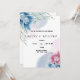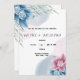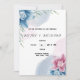 Blue Flower Faire-part de mariage est une carte de faire-part de mariage unique et moderne, bleue, rose et blanche, qui se présente sur un arrière - plan blanc, avec une disposition de texte simple et créative qui se démarque certainement.