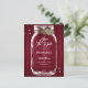 Cartes de faire-part de mariage personnalisées avec jarre de maçon et coeurs de toile de jute sur fond de bois de grange orné de lumières scintillantes. Personnalisez facilement en ligne. Articles assortis disponibles pour compléter ces faire-part de mariage bourguignons.