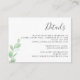 Une simple carte de détails de faire-part de mariage, pour compléter votre suite de faire-part de mariage d'automne. Ce design présente une branche d'eucalyptus à l'aquarelle avec un titre en police de caractères manuscrits et vos détails en police sans serif.