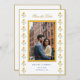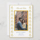 Carte de faire-part élégante jaune et blanche avec une bordure de souci à l'aquarelle et photo de couple.