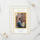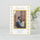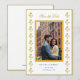 Carte de faire-part de mariage jaune et blanc avec une bordure de souci à l'aquarelle et une photo de couple.