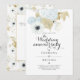 Cette invitation de mariage à l'aquarelle illustrée de fleurs blanches givrées et de bleu marine, avec des feuilles dorées, vous permet suffisamment d'espace pour ajouter des détails de mariage supplémentaires (modèles de texte à l'avant et au verso) tout en réalisant des économies sur les encarts supplémentaires, tout en maintenant la qualité et l'élégance. Pour les articles supplémentaires et les modifications personnalisées, contactez le Designer LeahG.
