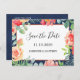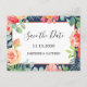 Ces cartes de sauvegarde de date présentent des fleurs de corail à l'aquarelle et un feuillage vert sur un fond bleu marine. Elles font partie d'une collection qui comprend toute une gamme de faire-part de mariage et de papeterie assortis. Veuillez visiter notre magasin pour voir toute la gamme d'articles que vous pouvez personnaliser pour votre mariage.