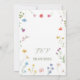 Cette invitation de mariage présente un design floral minimaliste et charmant avec des fleurs délicates à l'aquarelle de différentes couleurs encadrant les bords. L'arrangement floral léger et aéré comprend des fleurs roses, bleues, jaunes et rouges, créant une bordure légère et joyeuse sur fond blanc, évoquant une atmosphère merveilleusement romantique pour votre jour spécial.