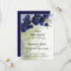 Élégant et artistique design de faire-part de mariage avec une superbe orchidée bleu foncé à l'aquarelle et éclaboussure de couleur verte et bleu foncé en arrière-plan.