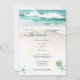 Magnifique peinture à l'aquarelle de l'océan et de l'arrière-plan de la plage pour un faire-part de mariage. Idéal pour un mariage sur la plage, thème nautique, destination côtière, Caraïbes, croisière.