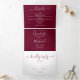 Faire-part de mariage triptyque tout-en-un couleur bourgogne avec une typographie élégante. Le faire-part comprend les détails d'information de vos invités de célébration et une carte RSVP détachable. Conçu par Thisisnotme©