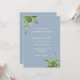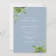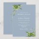 Cette élégante invitation de mariage botanique à base de feuilles de eucalyptus dans un bleu poussiéreux peut être personnalisée avec vos informations dans une typographie chic avec votre monogramme au verso. Conçue par Thisisnotme©