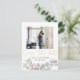 Carte d'annonce de mariage élégante et moderne. Ce design présente un beau feuillage d'eucalyptus dans des tons de vert sauge et de mauve poussiéreux. Avec une photo personnalisable, des noms et un texte doré faux magnifique.