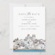 Cette carte de faire-part de mariage comporte une peinture à l'aquarelle de la skyline de Paros, en Grèce, et un dos simple pour un envoi facile. Ce faire-part est parfait pour votre mariage de destination inspiré de la Grèce ou votre événement sur le thème du voyage.