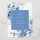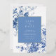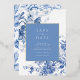Rendez votre jour de mariage unique avec notre faire-part de mariage élégant et minimaliste personnalisable, mettant en vedette des fleurs de jardin Toile de Jouy bleue poussiéreuse et royale avec une bordure en feuille d'or. Cette invitation élégante est facile à modifier et à imprimer directement via Zazzle, vous permettant de créer un ajout élégant et mémorable à votre journée spéciale !