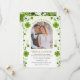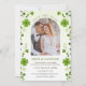Carte de rendez-vous photo avec les images de trèfles irlandais et de spirales. Vous pouvez ajuster le texte selon vos besoins et placer votre photo pour compléter.