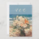 Une faire-part de mariage à thème côtier, ornée d'un bouquet de fleurs de mariée agrémenté d'une délicieuse étoile de mer, où se mêle harmonieusement roses beige, orange et bleu. Le design dégage une atmosphère artistique, qui rappelle une peinture à l'huile, donnant à la carte un style à la fois sophistiqué et élégant. Cette carte unique et spéciale est conçue exclusivement pour une mariée spéciale.