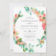 Cette faire-part de mariage à fleurs tropicales présente une jolie couronne de fleurs à l'aquarelle avec des fleurs tropicales, des feuillages luxuriants et des coquillages. La couronne de fleurs comprend des fleurs d'hibiscus et de plumeria dans de jolis tons de pêche, rose corail et rose roux. Les feuilles vert émeraude et turquoise décorent également la couronne d'aquarelle. Le dos de la carte est un joli jaune soleil. La papeterie mariage correspondante est disponible dans notre collection Tropical Floral mariage.