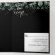 Ce design de faire-part de mariage moderne vert triple noir présente un mélange facile et des styles coordonnés en noir et blanc avec des éléments de verdure délicats ajoutant une floraison gracieuse autour d'une typographie simple sophistiquée et un joli script de calligraphie minimale. L'eucalyptus à l'aquarelle et d'autres feuilles botaniques s'arment magnifiquement tout le long, avec un teint émeraude foncé qui s'estompe dans un effet sombre pour un vert menthe clair - pour ajouter juste assez d'une touche classe de nature rustique à un décor contemporain neutre. Cette magnifique collection créerait un air d'élégance poli pour votre mariage de rêve formel ou décontracté ou autre événement spécial. Comme pour tous nos designs, si vous avez des questions ou des demandes spéciales, contactez-nous.