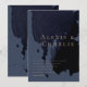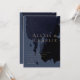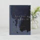 Un faire-part de mariage avec un fond lavis aquarelle abstrait bleu marine et noir. Ce faire-part de mariage minimaliste est parfait pour un thème de mariage moderne. Les textes dorés accentuent parfaitement le fond bleu marine.