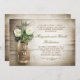 Fond en bois rustique romantique et pot de maçon avec fleurs blanches pour fête d'anniversaire de mariage ou dîner d'anniversaire de mariage. Je suggère un beau papier texturé lin pour ce design.