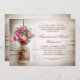 Fond en bois rustique romantique et pot de maçon avec des fleurs roses foncées faire-part de fête ou de dîner d'anniversaire de mariage. Je suggère un beau papier texturé en lin pour ce design.