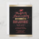 Cartons d'Invitation de Mariage Anniversaire Rubis Damassé Noir Bordure Dorée Élégants.