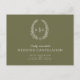 Une carte d'annulation de mariage fait partie de l'ensemble de mariage assorti au monogramme ovale à feuilles dessinées à la main vert olive. Idéal pour être utilisé comme carte d'information de mariage pour informer vos invités d'une annulation de mariage ou d'un événement, ou pour reprogrammer en raison d'une maladie ou de circonstances imprévues. Simple dessin de couronne de feuilles ovale encadrant vos propres initiales de monogramme. En vert olive et blanc. D'autres options de couleur sont disponibles. Création originale de Sarah Trett pour www.mylittleedenweddings.com