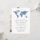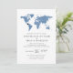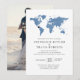 Carte du monde thème voyage Invitation pour une réception à domicile après un mariage de destination ou une fugue avec une carte du monde bleu poussiéreux et des polices classiques et une photo de mariage au verso. Si vous organisez une réception à domicile après un petit mariage à l'étranger ou un mariage surprise sur la plage et que votre famille veut célébrer dans votre ville natale, c'est une excellente occasion de s'amuser avec les invitations ou d'organiser une réception sur le thème du voyage pour le couple grand voyageur qui se sont rencontrés en voyageant. Ajoutez une carte de réponse sur le thème du voyage pour compléter l'ensemble, découvrez la boutique de créateurs Zazzle de Paper Grape Destinations.