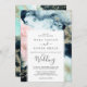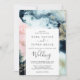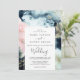Cette carte de faire-part de mariage aquarelle céleste abstraite est parfaite pour un mariage moderne. Le design élégant et lunatique présente une aquarelle bleu marine foncé et rose blush avec des éclaboussures de paillettes dorées, créant une atmosphère d'espace et de ciel nocturne.