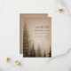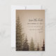 Un faire-part de mariage élégant avec une illustration d'arbres persistants sur un fond marron.