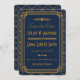 Ces faire-part présentent une palette de couleurs bleue et or, un cadre géométrique, des motifs géométriques et d'autres détails stylistiques inspirés de l'Art Déco et des années folles. Vous pouvez personnaliser les champs de texte d'exemple à votre goût.