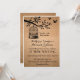 Conception de faire-part de mariage rustique et vintage. Cage à oiseaux suspendue à un arbre. Deux oiseaux d'amour volent vers la liberté. Avec fond en papier brun. Vous pouvez personnaliser le texte pour n'importe quelle occasion en automne. Enterrement de vie de jeune fille, baby shower, fête de fiançailles, enterrement de vie de garçon, barbecue, anniversaire, anniversaires de mariage et bien plus encore. Obtenez la carte de réponse RSVP assortie, le timbre-poste et les autocollants dans ma boutique Zazzle.