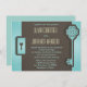Faire-part de mariage traditionnel mais moderne avec une belle clé squelette et un trou de serrure en forme de cœur. Le faire-part a des couleurs marron foncé avec des tons bleus. La police est tendance, mais elle peut être personnalisée pour répondre à vos besoins, y compris la police et la couleur.