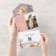 Simplifiez l'organisation de votre mariage avec cette invitation tout-en-un au code QR floral pêche et violet. Caractérisée par des roses aquarelles douces, des détails de graminées, une photo personnalisable et un code QR scannable pour RSVP ou informations sur l'événement, ce design rustique-boho allie beauté et commodité. Un choix parfait pour les mariages modernes de jardin et en plein air.