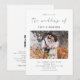 Faire-part de mariage élégant avec photo. Ajoutez votre photo préférée et personnalisez avec vos informations. Le mariage de est dans un ensemble élégant avec une écriture manuscrite stylisée. Générez un code QR vers votre site web de mariage pour remplacer celui au verso simplement en remplaçant l'URL exemple avec le vôtre, pour permettre à vos invités de répondre et voir plus de détails de manière pratique.