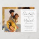 Avec vos photos spéciales et vos noms de style signature, ce faire-part de mariage élégant gris et blanc peut être personnalisé avec vos informations en lettrage gris chic. Conçu par Thisisnotme©