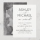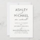 Cette belle invitation de mariage avec calligraphie 'Just Married' moderne présente une écriture calligraphique noir et blanc et une conception de typographie sans empattement en majuscules modernes sur le devant, et un design aquarelle noir et blanc au verso.