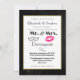 Une invitation de mariage de style moderne avec des lèvres roses et une illustration de moustache rétro. Sur un fond de tableau noir à l'intérieur d'un cadre doré. Personnalisez avec tous vos détails de mariage.
