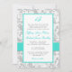 Cette liste est pour une belle papeterie faite sur commande de mariage damassé comportant la damassé argentée et blanche avec la bannière de turquoise.