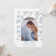 Toile délicate bleu et blanc avec oiseaux et fleurs entourant un cadre en arche avec photo de couple Carte de faire-part de mariage